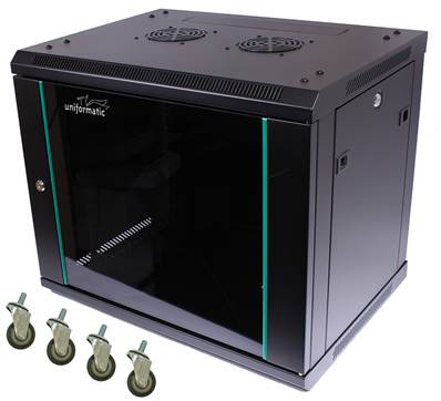 COFFRET CHASSIS FIXE PANNEAUX AMOVIBLES 12U P600 NOIR AVEC ROULETTES