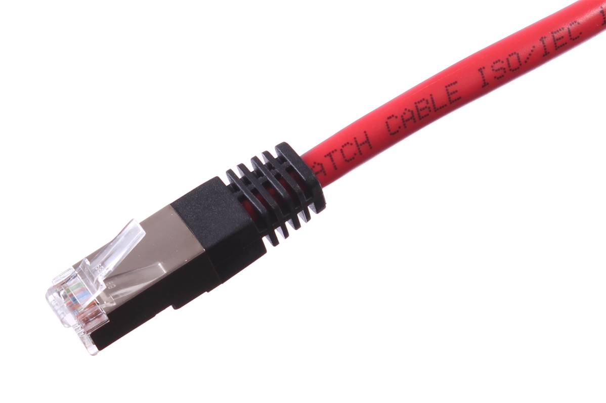 CORDON RJ45 CAT 6 100 Ohms CROISE FTP ROUGE MANCHON NOIR 3 METRES
